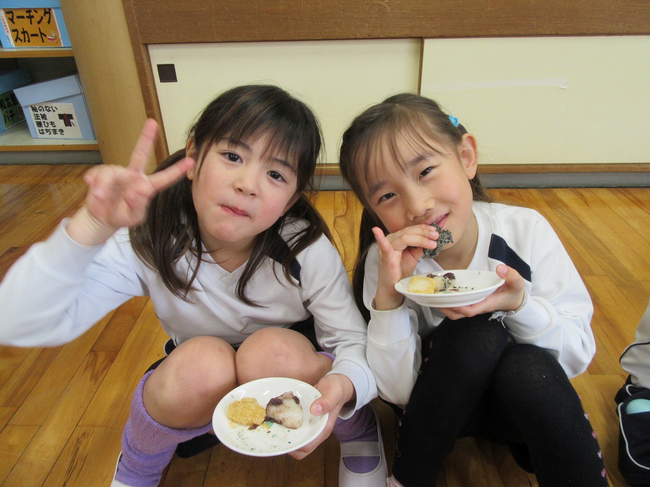 つきたてのお餅の味はそれはもう格別!「おいしー!」「やわらかいね」「きなこがすき♡」など、たくさん会話しながら味わっていましたよ(^^)